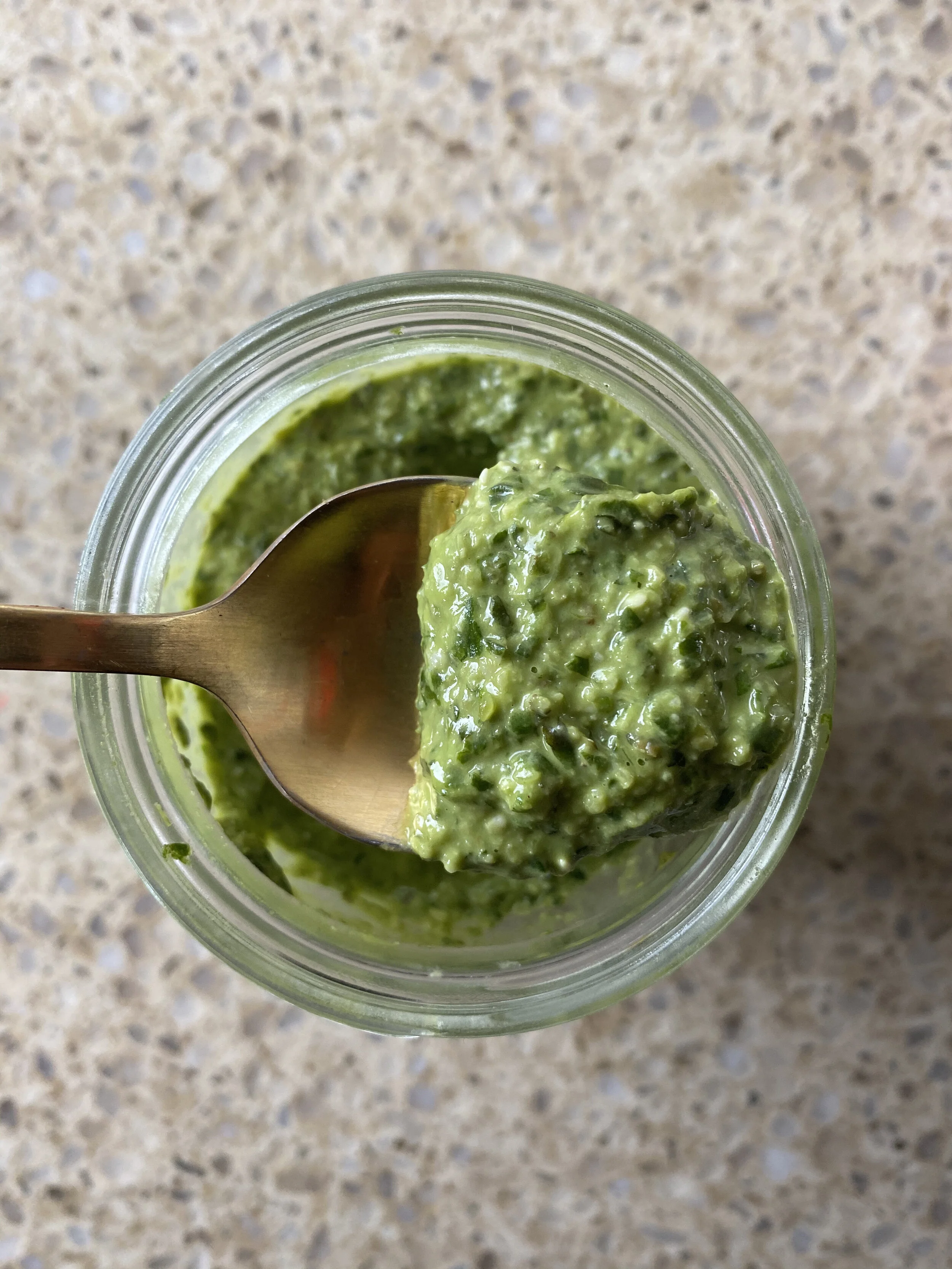 For an easy hack, freeze into ice cubes to have on hand. Pesto cubes are a must-have staple in my freezer.